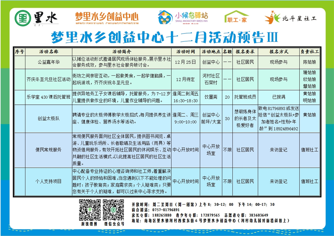 【佛山南海】里水创益中心项目12月份活动预告