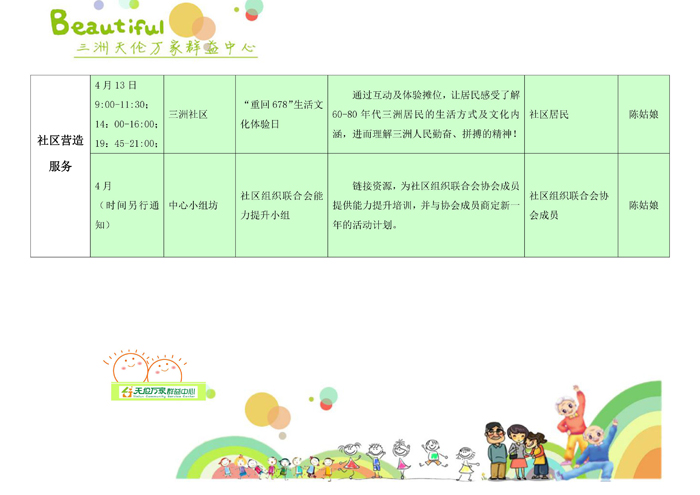 【佛山顺德】三洲天伦万家群益中心2019年4月活动预告