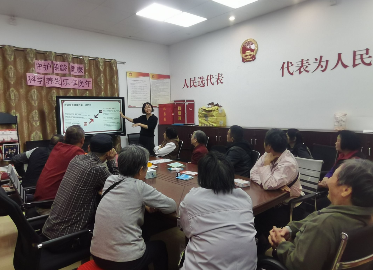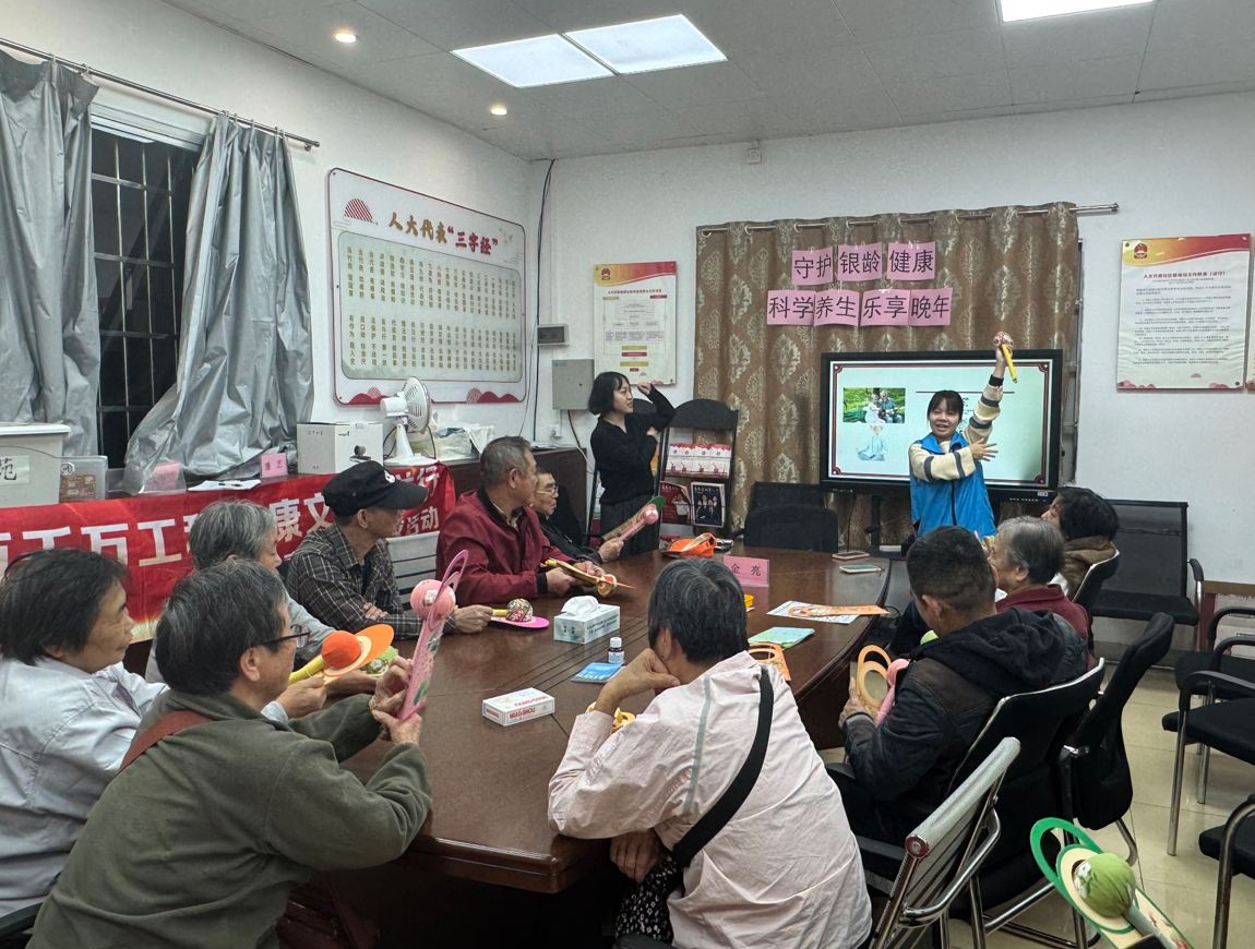 暖身游戏结束后,活动进入核心的健康知识分享环节。泰康人寿工作人员从营养、运动、识病、养心、细节护航五个维度,为老人们带来全方位的健康指导。在“营养为基”版块,工作人员分享了老年版211饮食法,三大饮食误区、饮食的“四宜”原则,讲解了老年人膳食搭配的核心原则,提醒大家少吃高盐、高油、高糖食物,多摄入优质蛋白和膳食纤维,并现场推荐了适合老年人的家常健康食谱。在“运动为钥”版块,分享了最适合中老人的运动类型、运动安全的注意事项;工作人员强调老年人运动要遵循“循序渐进、量力而行”的原则,避免剧烈运动,选择散步、太极、养生操等温和的运动方式更利于健康。在“识病为先”版块,工作人员讲解了脑卒中早期信号,慢性病管理“遵、测、记、调、忌”的健康知识,关注身体发出的“健康信号”,做到“早发现、早诊断、早治疗”。在“养心为本”版块,工作人员分享了情绪调节的“4-7-8”呼吸法,带领参与者跟随学习该方法,还鼓励参与者培养兴趣爱好、积极参与社交活动等,以积极乐观的心态面对晚年生活。在“细节护航”版块,工作人员向参与者分享了关于居家安全环境、应急常识内容;提醒老人们注意居家安全等细节问题。比如,安装扶手、感应小夜灯等,这些贴近生活的实用建议让老人们受益匪浅。参与者认真倾听工作人员的分享,对于不清楚的地方会进行提问,工作人员给予解答。