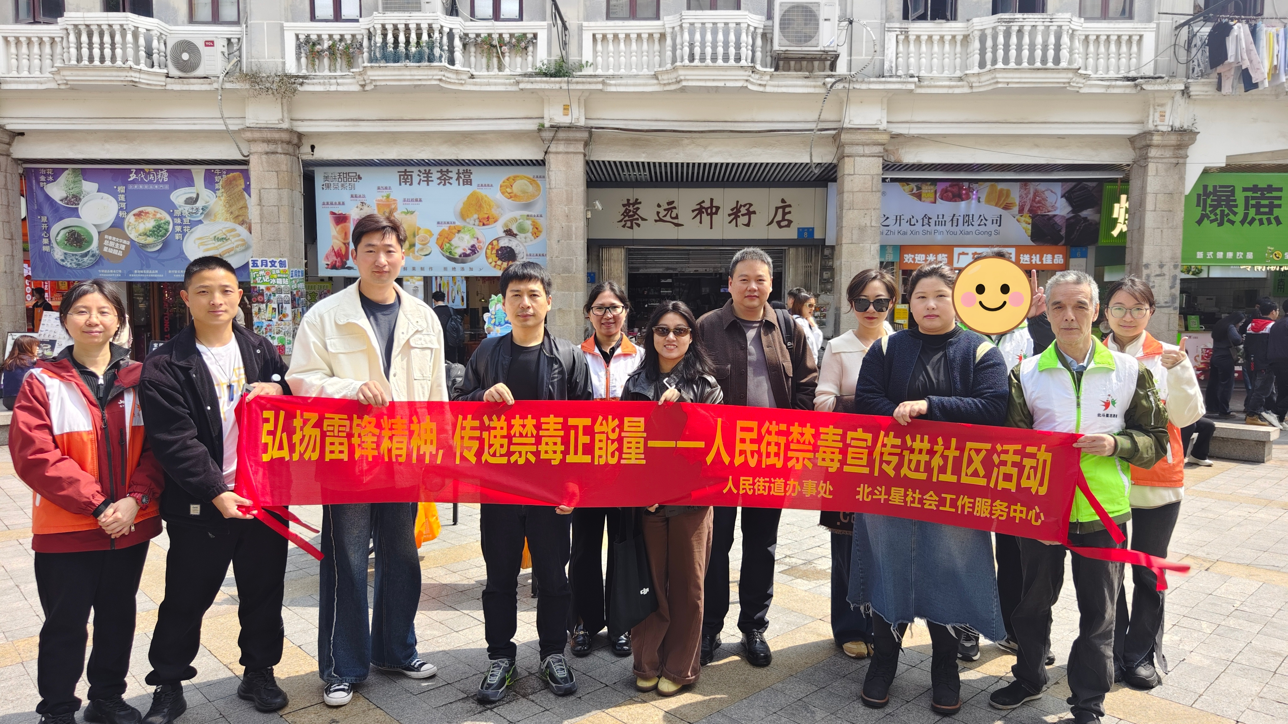 为弘扬新时代雷锋精神,营造健康、互助、无毒的社区环境,2026年3月5日,在越秀区禁毒办指导下,人民街平安法治办联合启航社工站(越秀北斗星禁毒社工)在石室广场开展以“弘扬雷锋精神,传递禁毒正能量”为主题的禁毒宣传活动。