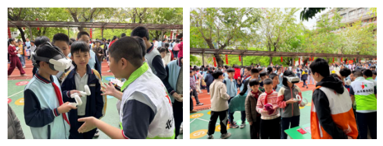 同学们有序体验VR互动场景