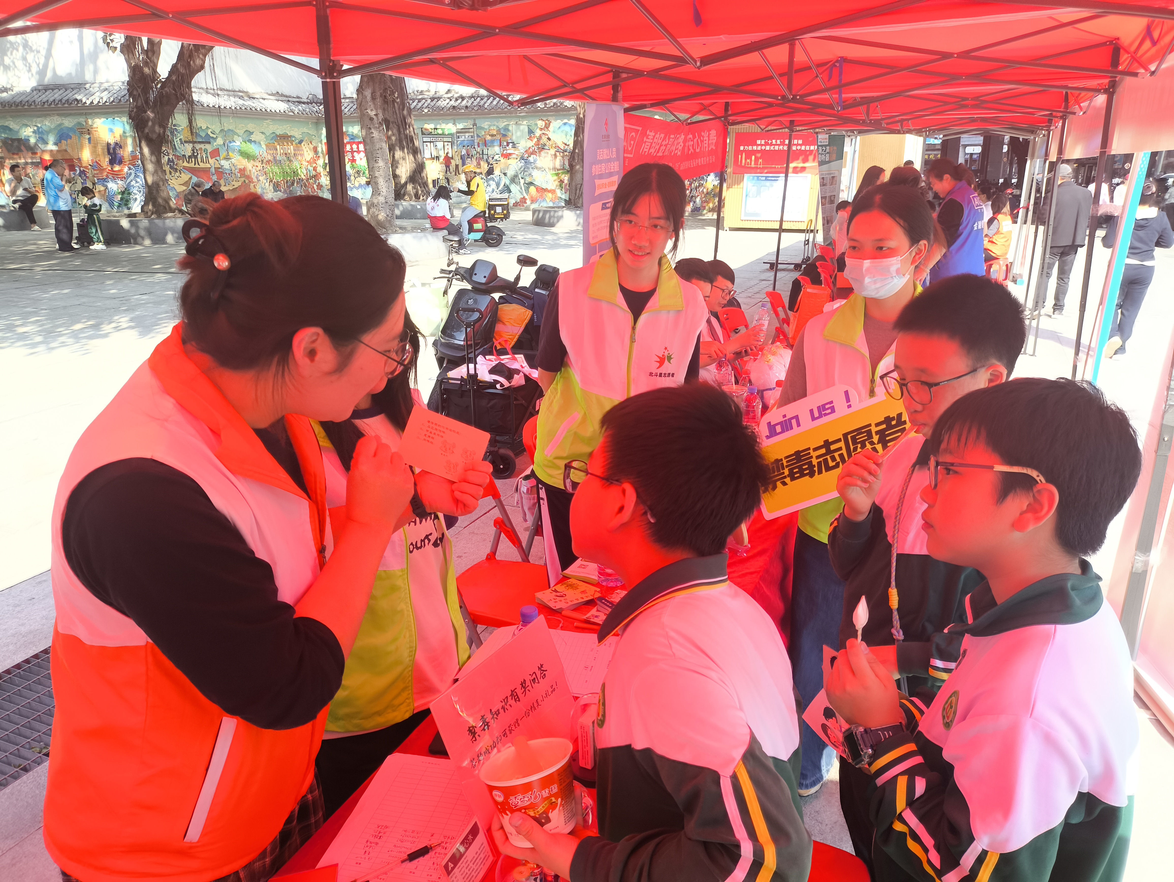 (本网讯 郭社工)三月春风和煦,雷锋精神广为传扬。为进一步加强禁毒宣传教育,巩固社区居民识毒、防毒、拒毒的意识和能力,2026年3月13日下午,在越秀区禁毒办的指导下,北京街平安法治办联合启航社工站(越秀北斗星禁毒社工)于城隍庙广场开展了以“雷锋精神伴我行,禁毒防毒不放松”为主题的禁毒宣传活动。