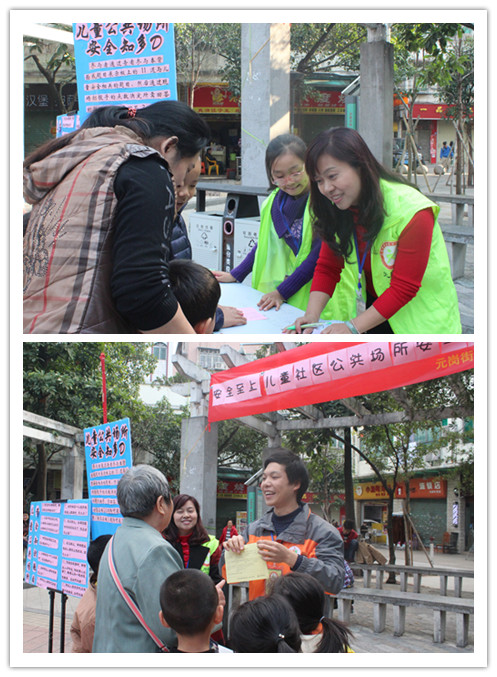 本网讯(刘宗纯)2017年1月22日,元岗家综在上元岗公园开展主题为“安全至上”的儿童社区公共场所安全宣传活动,活动共吸引约70人次居民的参与,达到不错的宣传效果,居民及义工对活动的评价颇高。在整体社会背景下,儿童在社区中的安全问题等案件的报道明显增加;加之社区中,出租屋林立、巷道狭小昏暗、人口密度极高,没有管理式小区存在的客观环境;及社区中有九成以上是新广州人,父母忙于生计而早出晚归,较少有时间陪伴儿童,社区中常看到儿童独自在公共场所玩耍并没有家长陪同的情况。因此,儿童在社区公共场所的安全尤为需要关注。据此,元岗家综也正推行“儿童公共场所安全社区防护计划”,以鼓励社区居民关注儿童在社区公共场所的安全情况,强化居民识别儿童安全隐患的意识,保障儿童在公共场所的安全。