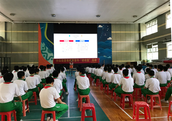 本网讯 (黎兰娇)2018年9月13日上午,白云街禁毒教育宣传“进校园”活动在广州市育才实验学校举行。活动由白云街禁毒办、禁毒工作站以及广州市北斗星社会工作服务中心主办。禁毒社工通过宣讲课和宣传活动形式向学生增强珍爱生命,远离毒品的自我防范意识。