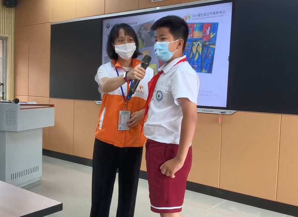 本次禁毒预防宣传开学第一课延续上学期的国旗下的宣讲、禁毒互动学习摊位的学习,禁毒社工通过ppt、视频和展板宣传的方式,为养正小学的师生们提供强化禁毒知识学习的平台;通过食品安全引入,提高同学们讨论的积极性和互动性。考虑到疫情防控需要,本次禁毒预防宣讲安排了六年级部分班级同学现场参与,其他同学采用在班级收看直播的方式。在ppt讲解环节加入“禁毒一练”环节,从“在哪个地方买东西吃更安全”、“小方同学在小卖部买了包跳跳糖说吃了很兴奋,邀请你尝尝,怎么做?”等日常同学们遇到的情景问题引起思考。在互动问答中,同学们积极分享收获到的禁毒知识,如很多披着华丽外衣的“伪装毒品”糖衣炮弹、电子烟里面可能存在大麻成分让人上瘾等情况。