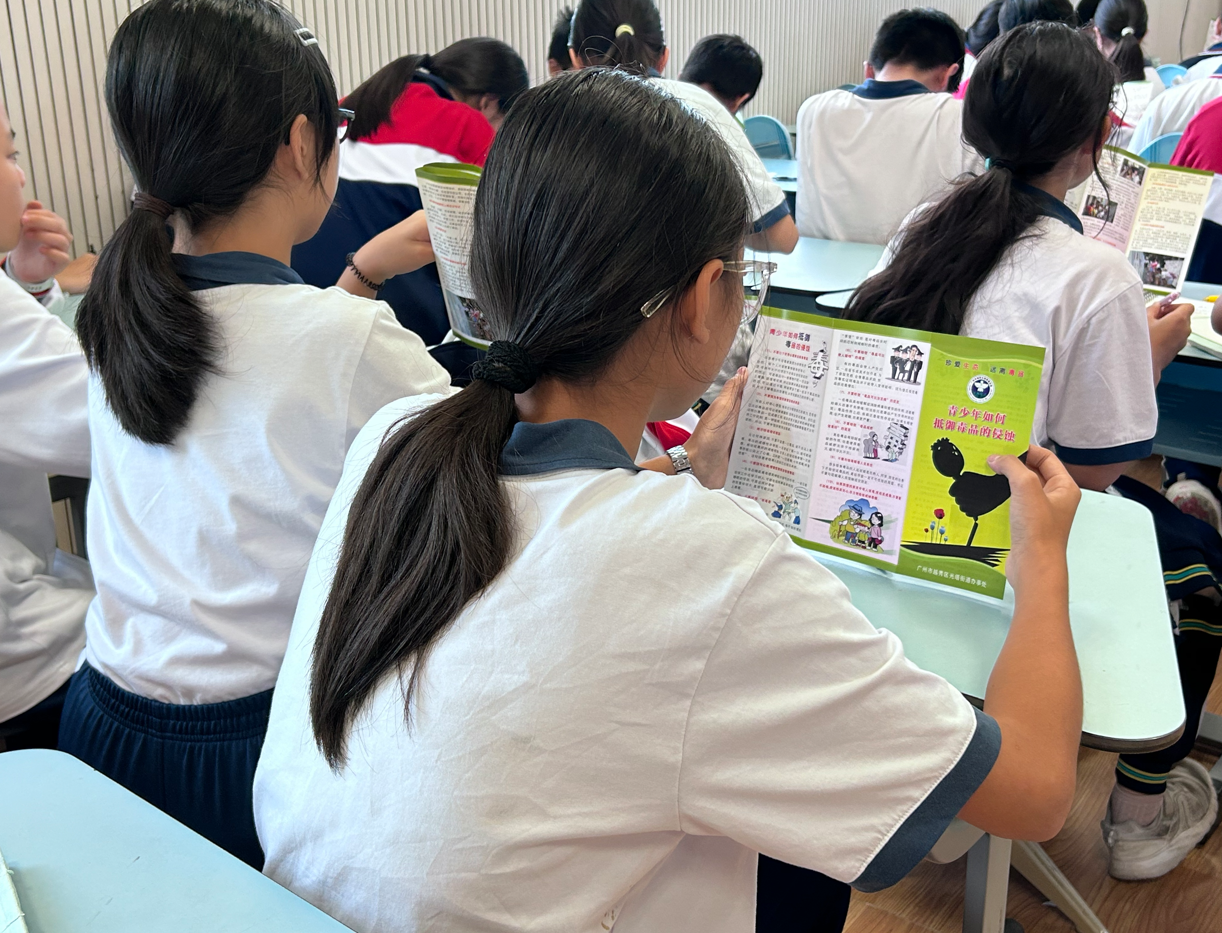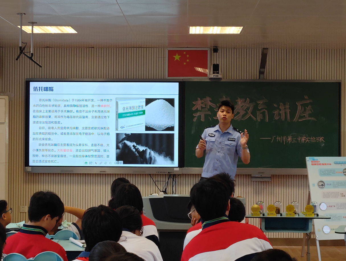 为充分发挥学校禁毒教育主阵地作用,着力抓好青少年毒品预防教育工作,提高校园师生识毒、防毒、拒毒意识和能力.2025年11月11日下午,在越秀区禁毒办的指导下,光塔街平安法治办联合北斗星越秀禁毒社工在广州市第三中学实验学校开展禁毒宣传教育,并邀请广州市松洲强制隔离戒毒所的警官给学生们上一堂生动的禁毒课。