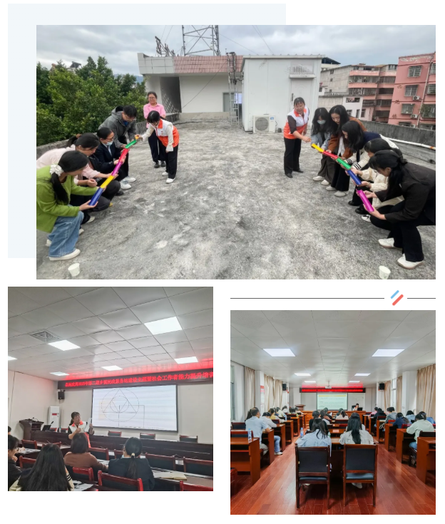 本次培训共有33名学员参加,采用“理论讲解+实务演示+互动体验+案例分享”的形式进行,系统地讲解了小组工作的基本认知、实施流程、常用技巧、游戏体验、案例分享以及工作锦囊。参训学员表示,此次培训内容实用性强,切实解决了实际工作中的各类疑问和难题,提升了工作中的自信心与应对能力,更加坚定了做好本职工作的决心。