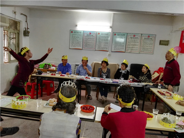 活动开始后,东山街幸福社区居委会副主任郑海秀和家综社工钟韵华先后向长者送上了生日祝福,长者们则通过掌声来表达感谢。在一轮的相互认识之后,长者之间有了更多的交流,有的在这里找到了同行者,有的遇到了有相似或者共同的兴趣爱好者,有的长者更是愿意给大家展示才艺,共同庆祝生日庆典。参与者的积极性和较高的融入度促进了活动顺利进行。